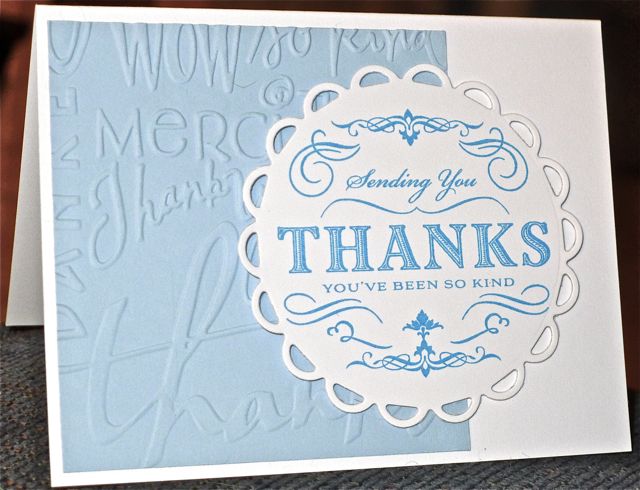 Supplies: Stamps - PaperTrey; Paper - PaperTrey; Ink - Memento; Misc - Cuttlebug Embossing FOlder, Lacy Circles Nestabilities, Foam Squares